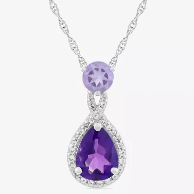 Womens Genuine Purple Amethyst Sterling Silver Pear 18 Inch Pendant Necklace