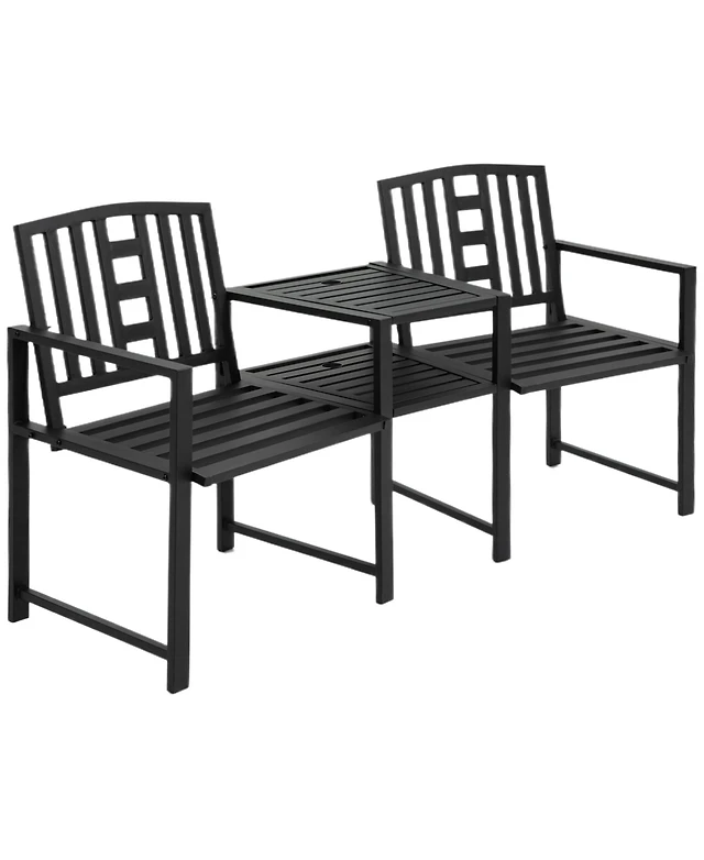 Slickblue 2 Seats Outdoor Glider Bench with Armrests and Slatted Seat