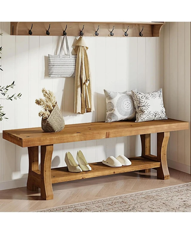 Tribesigns Solid Wood Dining Bench, Rustic Farmhouse Bench for Dining Table, 2-Tier Wooden Storage Seat