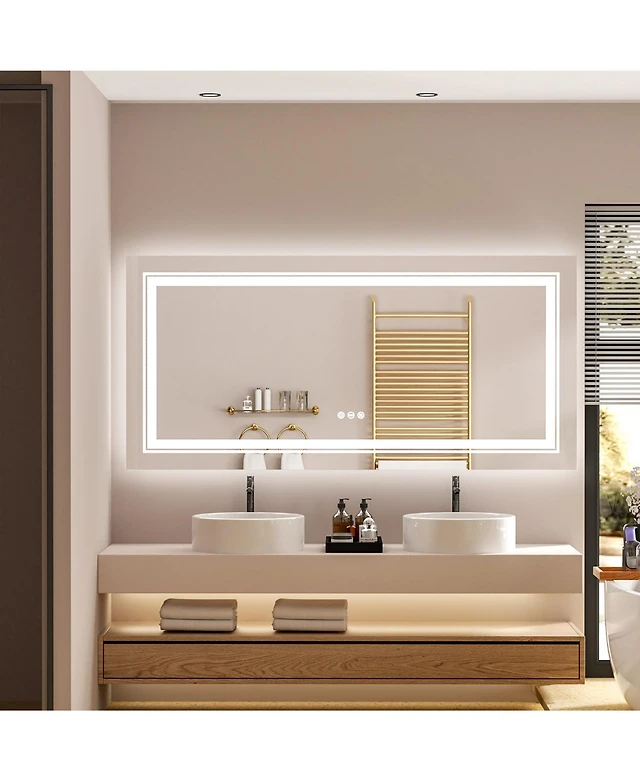 Amorho Led Bathroom Mirror, 72" x 40" with Front Light and Backlit, Stepless Dimmable Wall Mount Mirrors, Anti-Fog, Shatter-Proof, Memory, 3 Colors Li