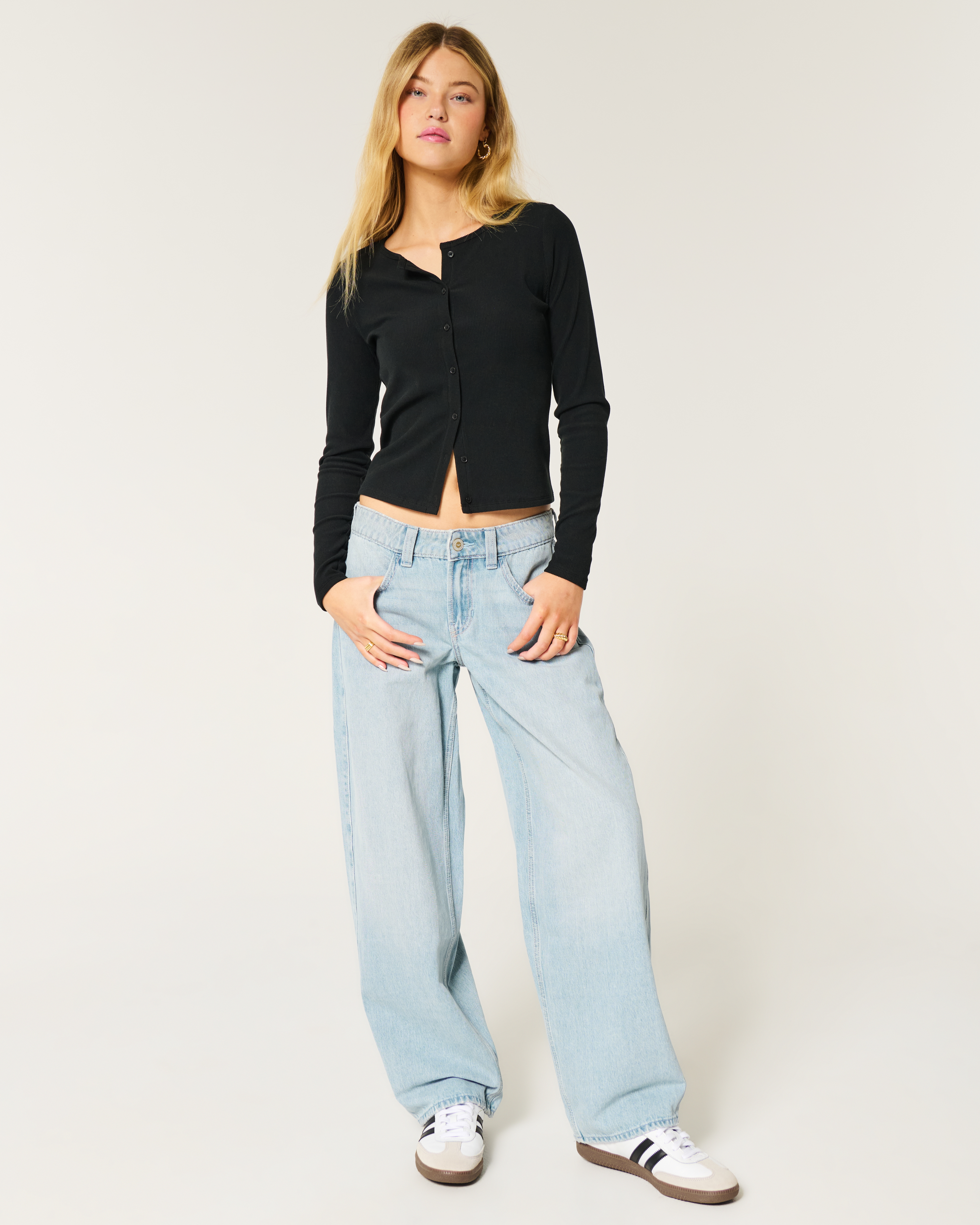 Low-Rise Ripped Medium Wash Baggy Jeans