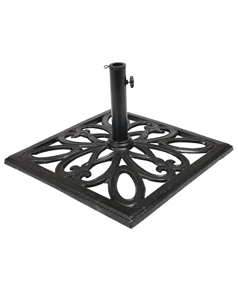 Add an elegant and functional piece of outdoor decor to any patio or backyard with this cast iron, heavy-duty umbrella base stand. Durably constructed of cast iron, this outdoor patio umbrella base is weather resistant and can withstand the elements outside to last season after season. This base for patio umbrellas is also incredibly versatile and can accommodate umbrella poles of different sizes. The stand alone can accommodate umbrella poles up to 2"" in diameter. The included pole adapter is designed for smaller patio umbrella poles and can accommodate poles between 1.5"" and 1.75"" in diameter. The patio umbrella stays firmly in place with the included thumbscrew.