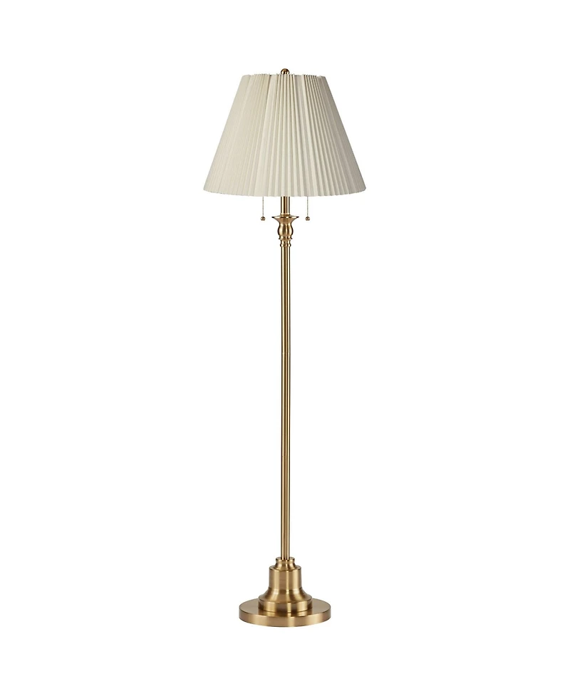 Create the living space of your dreams with the Dyna floor lamp, from the 360 Lighting brand. Perfect for homes blending contemporary and industrial styles, this antique brass finish floor lamp comes with an off-white knife pleated cotton and polyester blend hardback empire shade. Twin pull-chains easily operate two bulbs, bringing welcome illumination to your home.