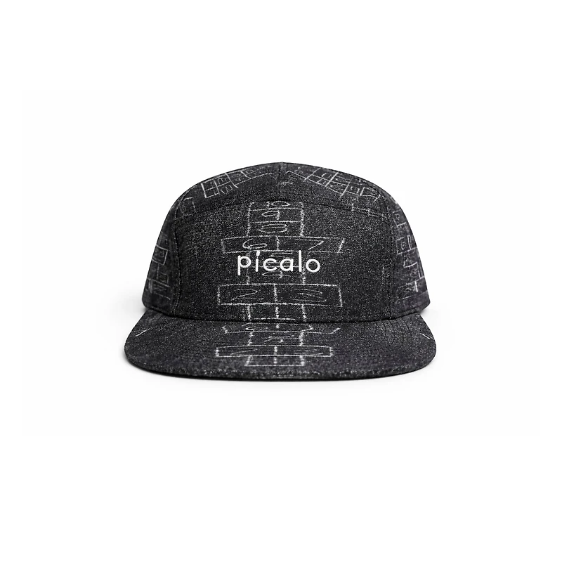 Esta gorra está inspirada en uno de los juegos más simples y universales de nuestra infancia: la peregrina dibujada con tiza sobre el cemento caliente. No había reglas escritas ni canchas oficiales, solo un canto improvisado, una piedra y el deseo de llegar al cielo sin pisar la línea.
