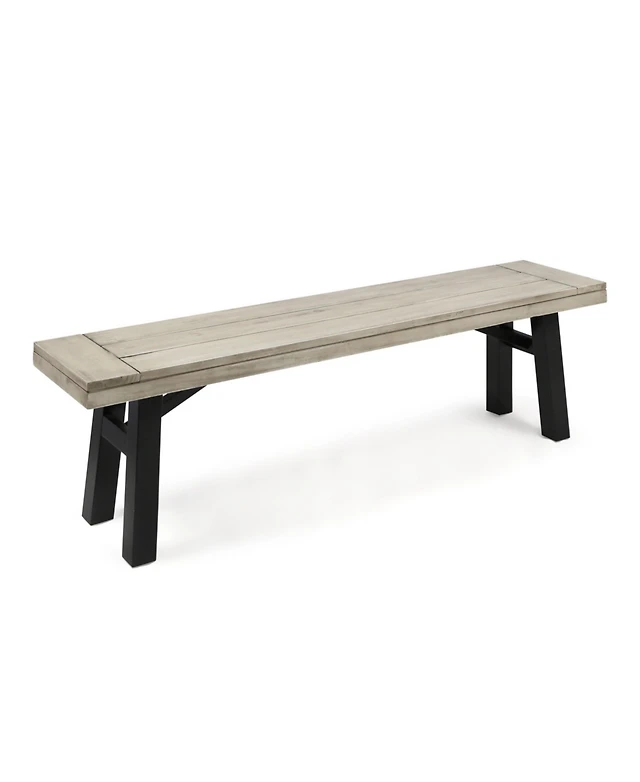 63 in. Sandblasted Light Gray Wood and Metal Outdoor Patio Bench