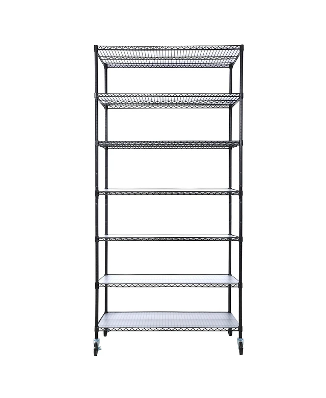 7 Tier Metal Shelf Wire Shelving Unit, 2450lbs Heavy Duty Adjustable Storage Rack with Wheels & Shelf Liners