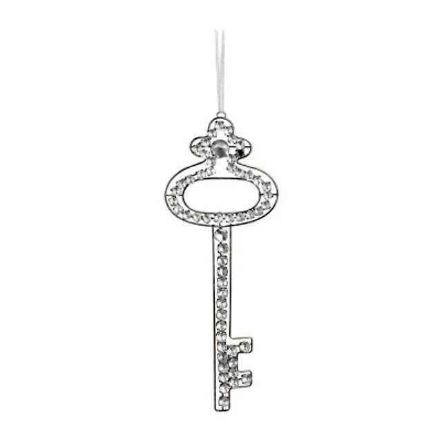 9'' Silver Antique Finish Rhinestone Key Christmas Ornament
