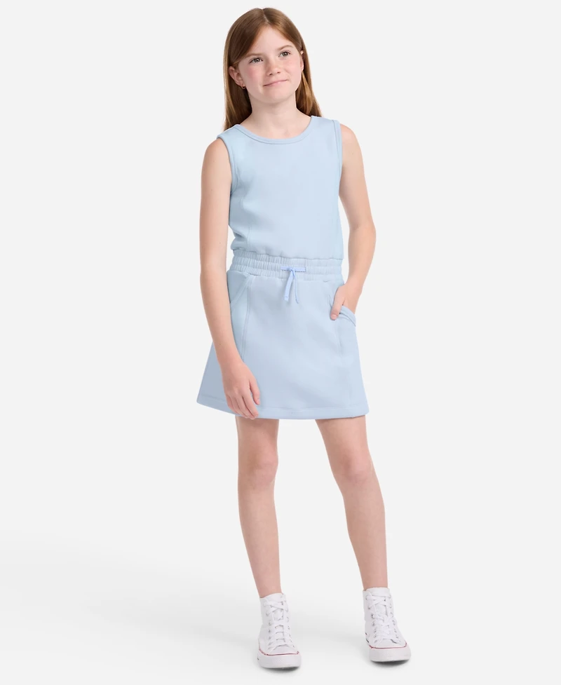 This active dress from abercrombie is made of sleek, smooth, polyester, viscose scuba knit fabric that wicks away moisture while you move. It has added stretch which makes it easy for you to step into, the elasticized waistband has a drawcord for a comfy fit, and built-in shorts provide full coverage.