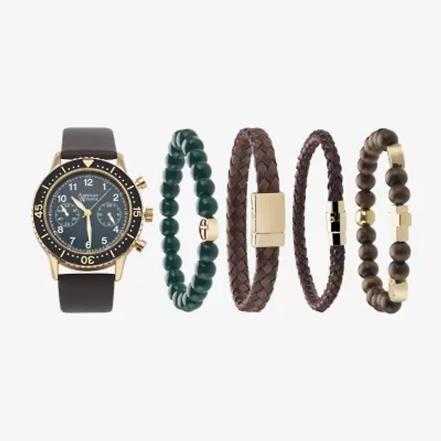 American Exchange Mens Black Leather 4-pc. Watch Boxed Set 8038g-42-G02