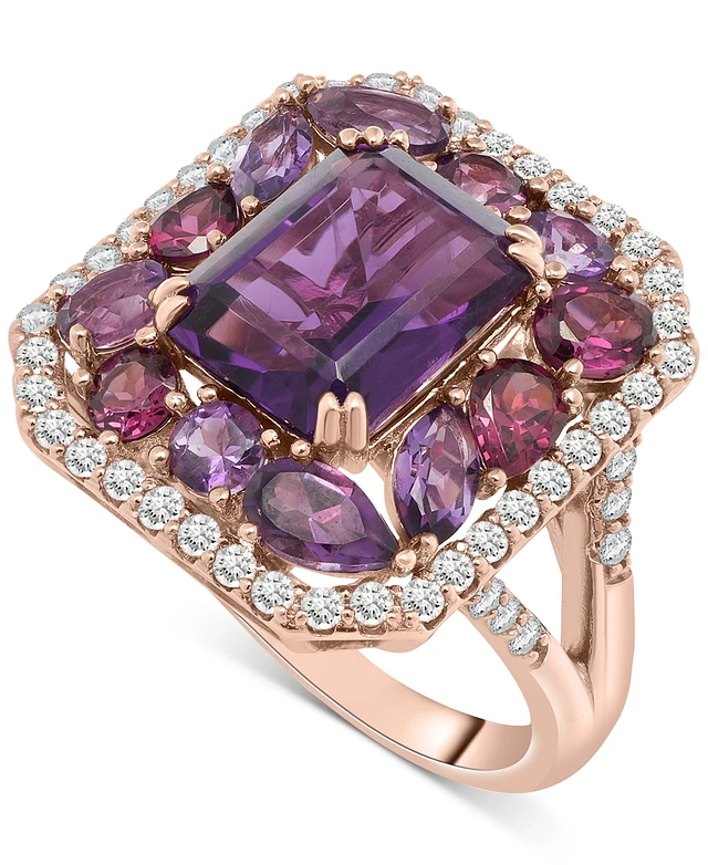 Le Vian Pomegranate Garnet (2-3/8 ct. t.w.), Grape Amethyst (3/8 ct. t.w.) & Diamond Halo Statement Ring in 14k Rose Gold
