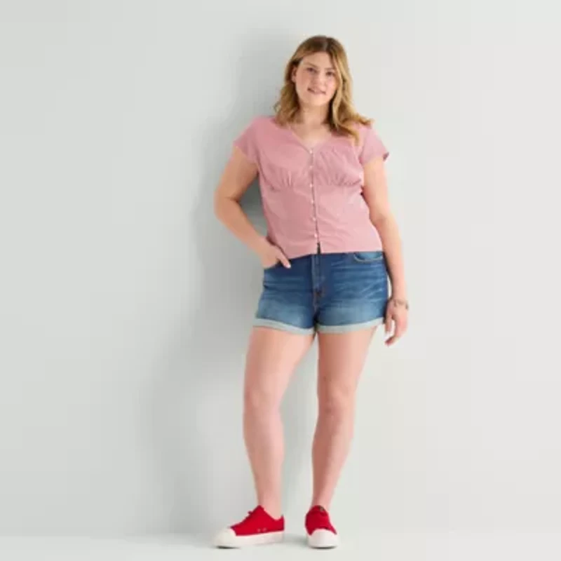 Arizona Womens 2 1/2" High Rise Juniors Plus Denim Short