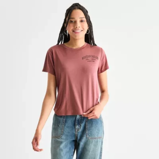 Arizona Womens Juniors Crew Neck Short Sleeve Regular Fit Graphic T-Shirt