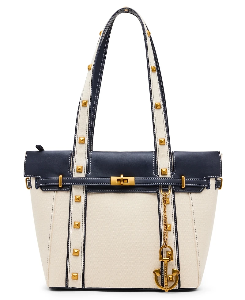 Command attention with this Betsey Johnson Shore Thing large tote bag, highlighted by stud embellishments for bold impact. A zipper closure secures belongings, and the spacious interior accommodates everyday essentials with ease.