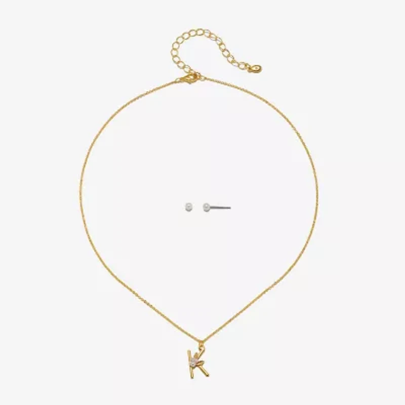 Bijoux Bar Delicates Floral Initial Womens Glass Simulated Pearl 2-pc. Jewelry Set