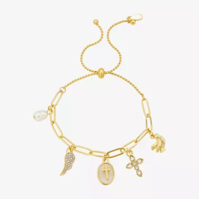 Bijoux Bar Delicates Gold Tone Womens Glass Cross Wing Charm Bracelet