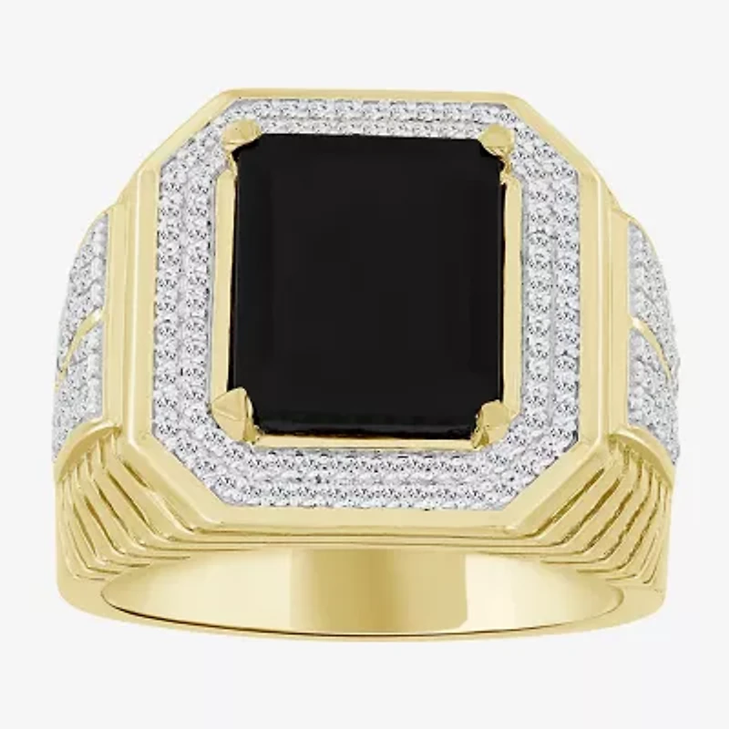 (Black / I3) Mens 1/2 CT. T.W. Natural Black Onyx 10K Gold Cocktail Ring