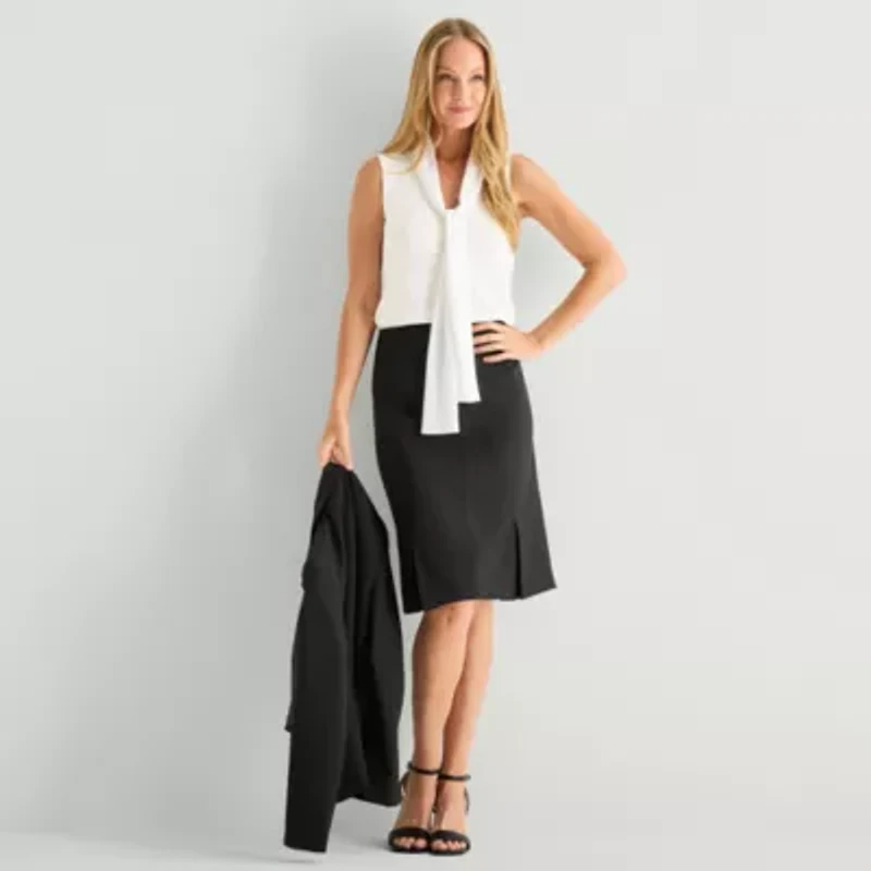 For a formal work day or a night out, this knee-length skirt by Black Label by Evan-Picone looks great paired with a blouse or a t-shirt layered with a blazer. It's made from a soft stretch-crepe and sits right at the waist with kick pleats at the front and back and a concealed side zip closure.