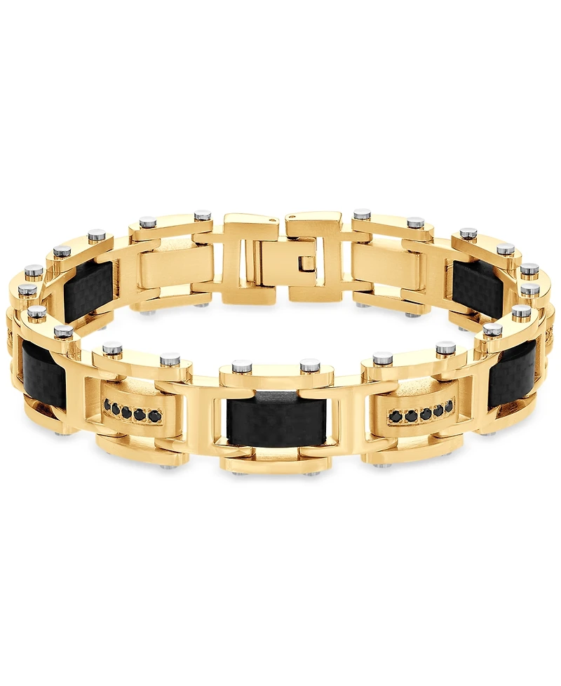 This bold, handsome men's square link bracelet features carbon fiber and cubic zirconia detail - from Blackjack.