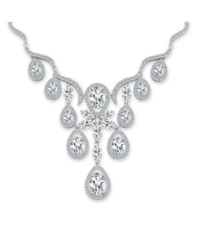 Bling Jewelry Estate Art Deco Style Multi Teardrop Cz Statement Spray Bib Collar Necklace Silver Plated