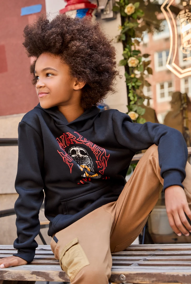 Get ready for cool days and even cooler style with the Boys Hungry Dogs Never Loyal Pullover Hoodie. Made from soft and cozy 100% polyester fleece, this sweatshirt keeps him warm while making a bold statement. Perfect for kids who love to stand out, this hoodie combines comfort with a touch of attitude. Whether he's hanging out with friends or heading to school, this hoodie is the ultimate go-to for effortless, everyday style.