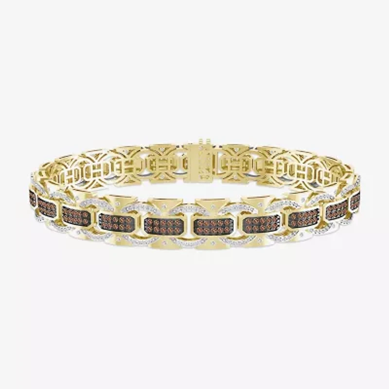 (Brown / I3) Mens 10K Gold Semisolid Link Bracelet
