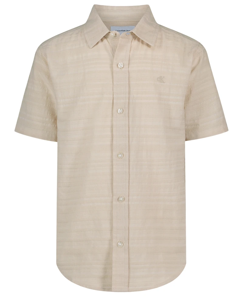 Calvin Klein Boys' 8-20 Texture Stripe Woven Short-Sleeve Shirt