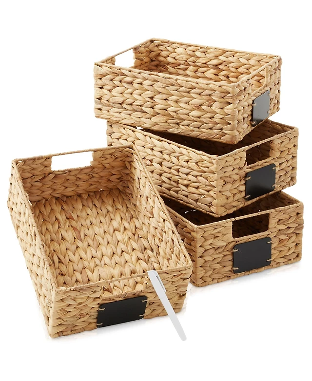 Casafield (Set of 4) Water Hyacinth 10"x13"x5" Pantry Baskets w/ Chalkboard Labels and Marker