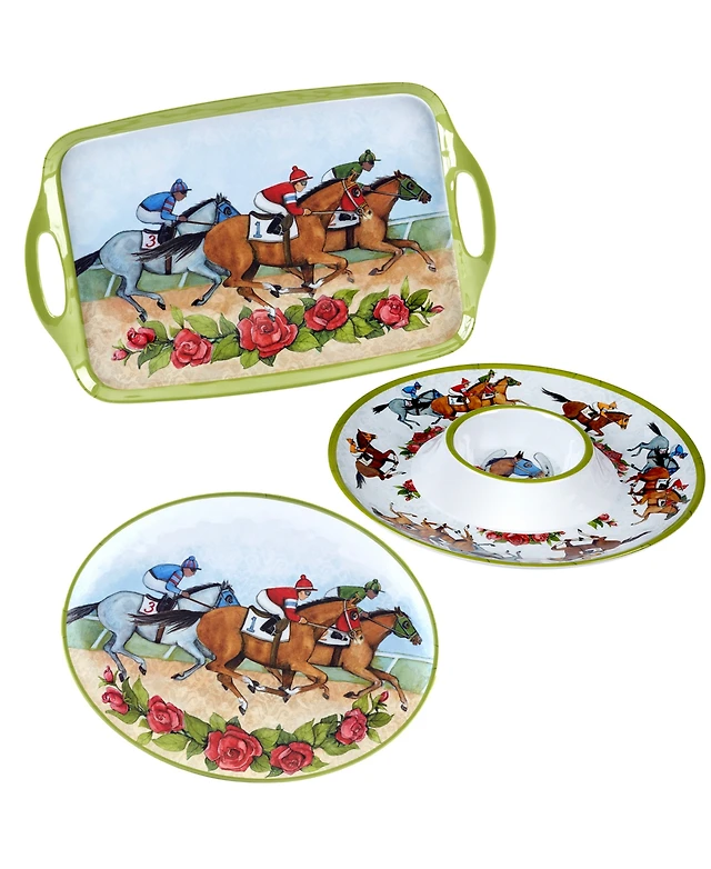 Certified International Derby Day At The Races 3 Pc Melamine Serving Set