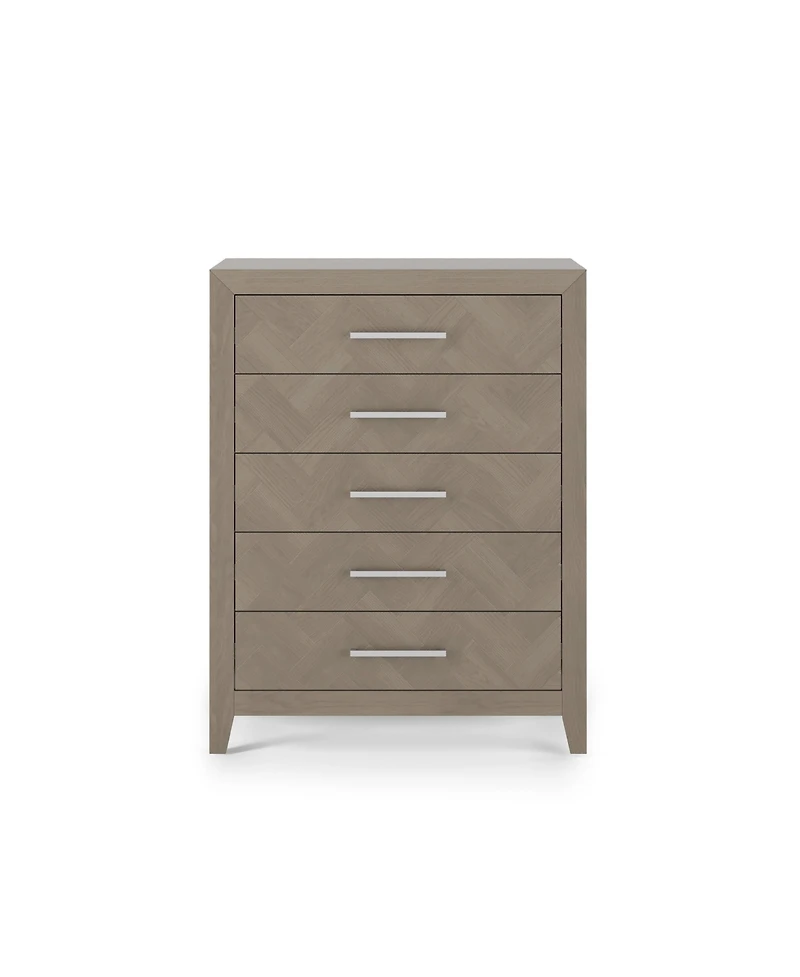 The transitional, yet modern style of the Child Craft Kieran 5-Drawer Chest provides a beautiful, sophisticated feel for your baby s nursery, kids room, or bedroom. The Kieran 5-Drawer Chest features five spacious drawers which allow for your child s clothes, blankets, and more. The Kieran 5-Drawer Chest is constructed from strong, highly durable pine wood and Mdf, and each drawer features metal glides. The Child Craft Kieran 5-Drawer Chest is available in two sophisticated, elegant finishes to complement any style and decor: Toasted Chestnut and Crescent Gray. The Kieran 5-Drawer Chest can be paired with other pieces from the Kieran nursery furniture collection to create a cohesive nursery design that is both unique and sophisticated. When assembled, the dimensions of the Child Craft Kieran 5-Drawer Chest are as follows: 39" L x 17.5" W x 50" H, with a weight of 130 pounds. The drawer of the Child Craft Kieran 5-Drawer Chest measures 31.75" L x 13.25" W x 5.25" H.