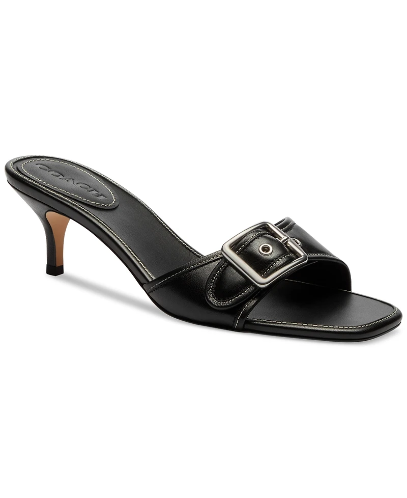 Easy to dress up or down, the Margot sandal is crafted of smooth leather. This slip-on design is finished with a polished buckle and a sculpted kitten heel.