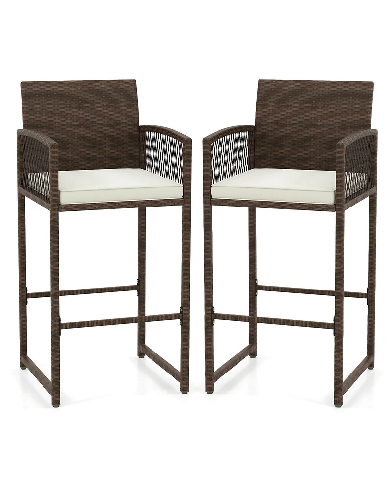 Costway Patio Bar Stools Pe Rattan Height Chairs with Backrests and Armrests
