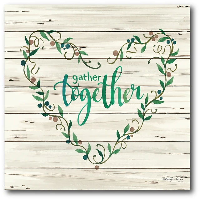 Courtside Market Gather Together Heart Wreath Gallery-Wrapped Canvas Wall Art - 16" x 16"