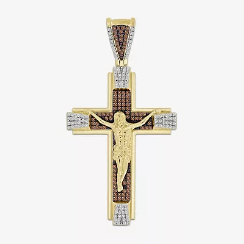 Crucifix (Brown / I3) Mens 1/2 CT. T.W. Natural Champagne Diamond 10K Gold Cross Pendant
