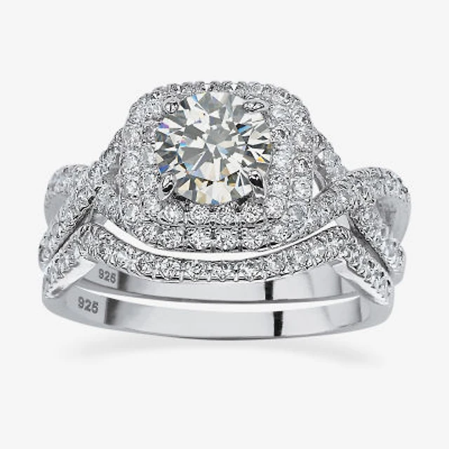 DiamonArt® Womens 1 3/4 CT. T.W. White Cubic Zirconia Platinum Over Silver Bridal Set