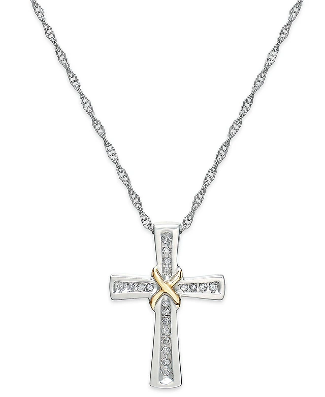 Diamond Cross X Pendant Necklace in Sterling Silver and 14k Gold (1/10 ct. t.w.)