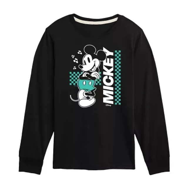 Disney Collection Little & Big Kid Boys Crew Neck Long Sleeve Regular Fit Mickey Mouse Graphic T-Shirt