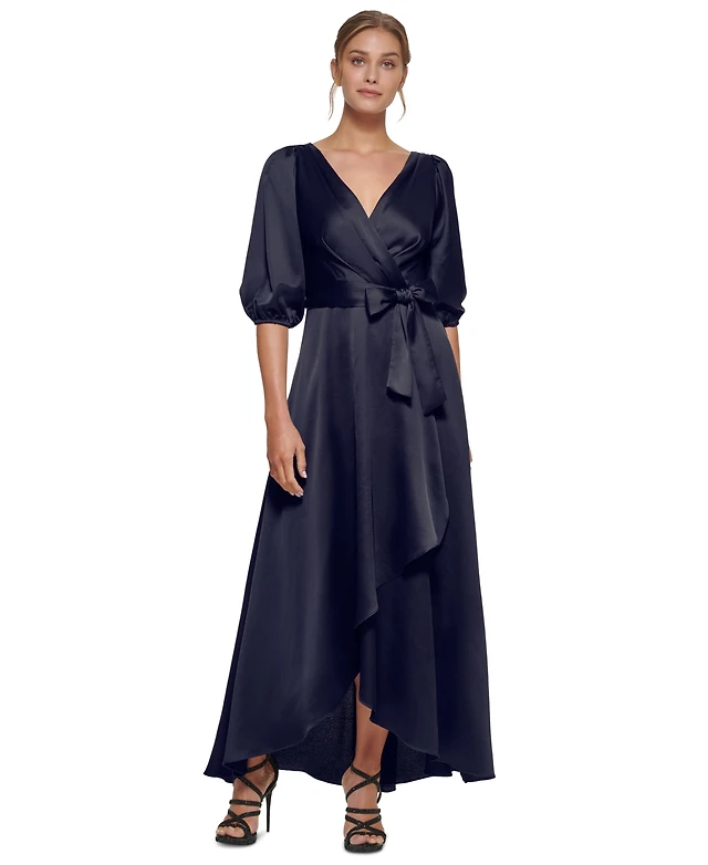 Dkny Balloon-Sleeve Faux-Wrap Gown