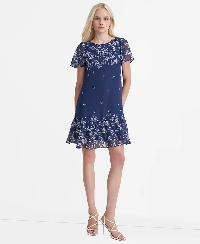 Dkny Women's Printed Flutter-Sleeve Mini Dress