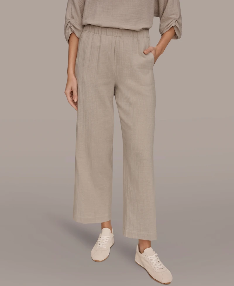 Own streamlined comfort in these Donna Karan Weekend pants crafted with a pull-on silhouette for effortless wear. Front slant pockets refine the clean design with everyday functionality.