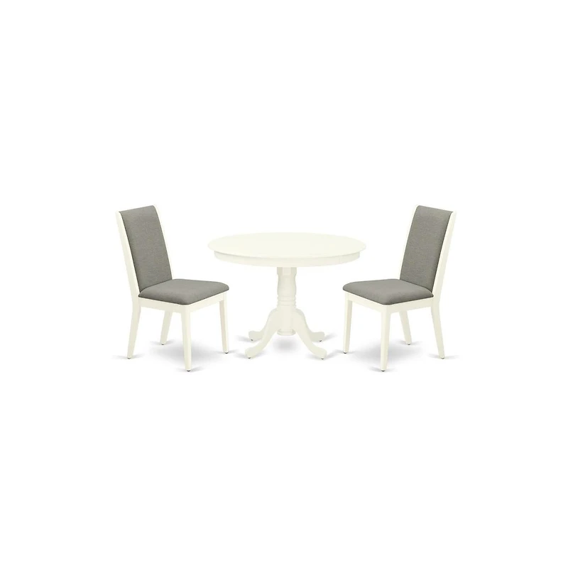Dining Room Set Linen White, SULA3-lwh-06. [Kitchen Dinette Set]: The set includes a round kitchen table with Two Shelves and 2 parson chairs. Gather everyone around this mid century dining table set-it seats 2 perfectly for attractive and relaxed dinner time. It is an ideal addition to your. [Finish]: Our kitchen table and chairs set finished in a rich Linen White color flexible with any Decor