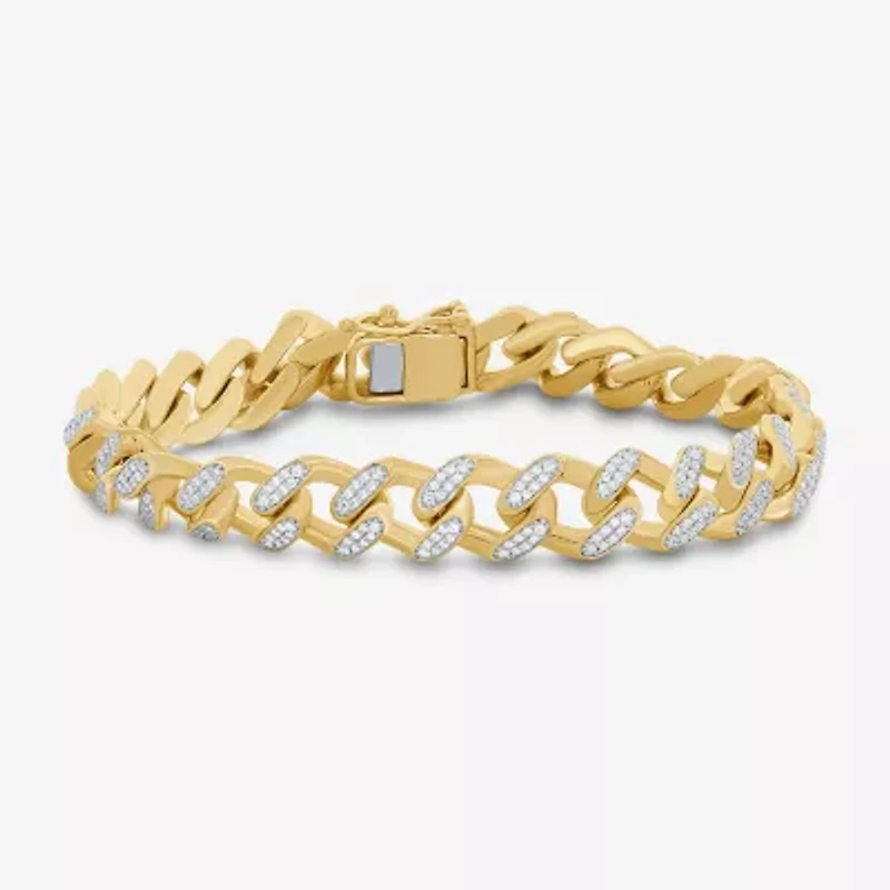 (F / Si2) Mens 14K Gold Over Silver 8 1/2 Inch Semisolid Curb Chain Bracelet