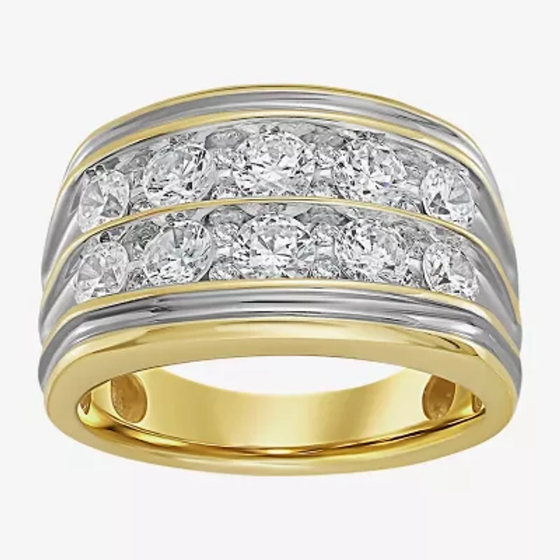 (F / Si2) Mens 14MM 2 CT. T.W. Lab Grown White Diamond 14K Gold Over Silver Band