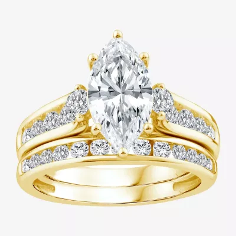 (F / Vs2) Womens 3 CT. T.W. Lab Grown White Diamond 14K Gold Marquise Side Stone Bridal Set