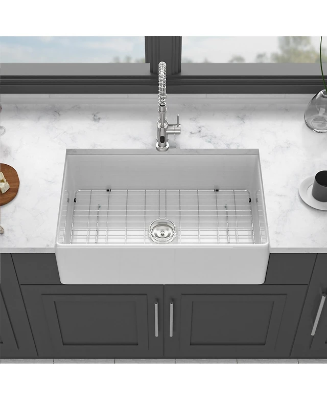 Casainc Single Bowl Fireclay Farmhouse Kitchen Sink with Accessories