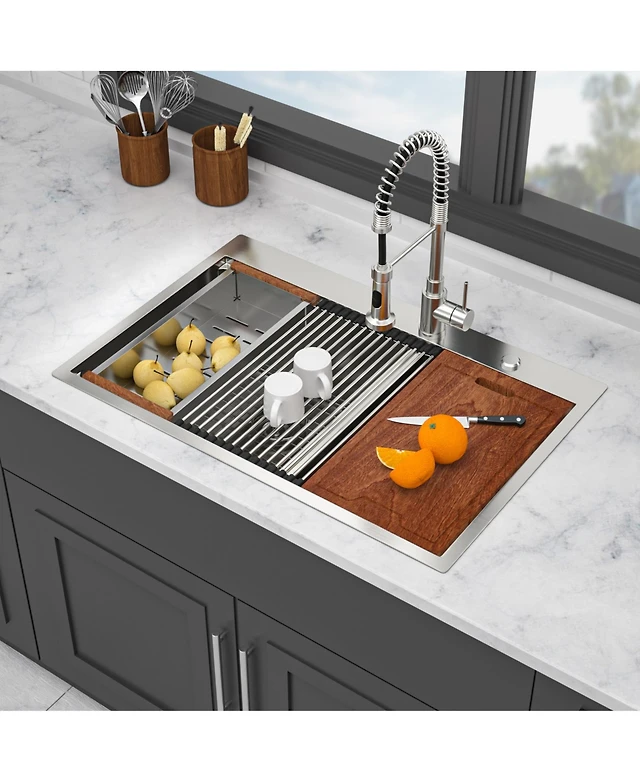 Casainc 33" L x 22" W Single Bowl Stainless Steel Topmount Kitchen Sink with Accessories