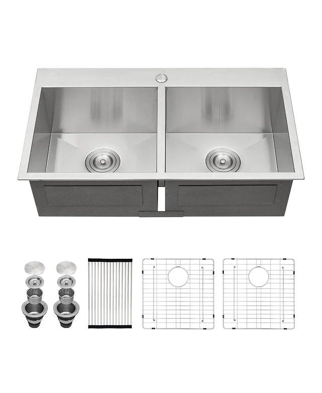 Casainc 33" L x 22" W Single Bowl Stainless Steel Topmount Kitchen Sink with Accessories