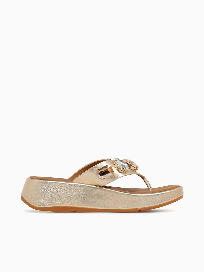 Effortless styling meets biomechanical precision. A cult silhouette within our line-up, the F-Mode sandals showcase a streamlined toe-post silhouette crafted from supple leather this season, finished with a cluster of oversized jewel embellishments across the toe. Built on our legendary Microwobbleboard™ midsoles, these sandals utilize triple-density cushioning to keep your feet comfortable all day; they’re firm at the heel to help absorb impact as your foot strikes the ground, with a softer, cushioned middle to maximize comfort and a medium-density toe area to boost that ‘push-off’ motion.