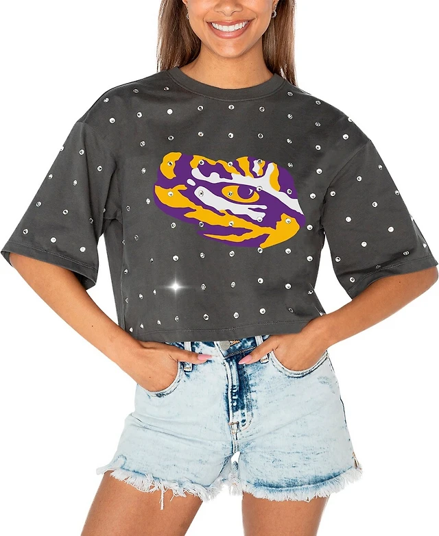 Gameday Couture Women's Gray Lsu Tigers Go Time Rhinestone Crop T-Shirt