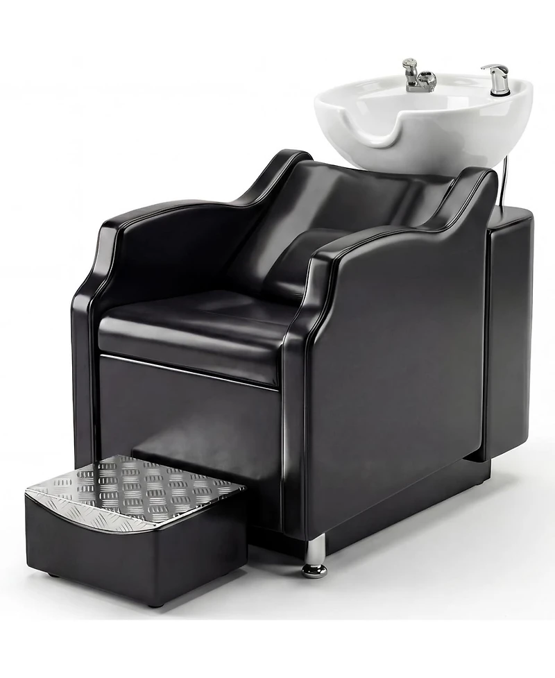 [Ultimate Comfort and Support]-Our Shampoo Bowl and Chair Set features a 3.9-inch thick cushioned seat with soft Pu Leather upholstery and a built-in rubber headrest, ensuring clients relax completely during hair washing. The included Footrest provides full body support, while the 450LBS weight capacity handles all body types safely. Ideal for professional salons and home care, this set reduces stylist strain and enhances client comfort with its ergonomic design.[Durable Ceramic Bowl with Deep Basin]-Crafted from high-quality Ceramic Bowl, this hair washing station boasts a deep 9.1-inch basin that prevents spills and accommodates long hair easily. The Pu Leather chair is water-resistant and easy to clean, making it perfect for busy salons and barbershops. With a sturdy frame and 450LBS Capacity, it offers long-lasting durability and reliability for daily use in beauty spas.