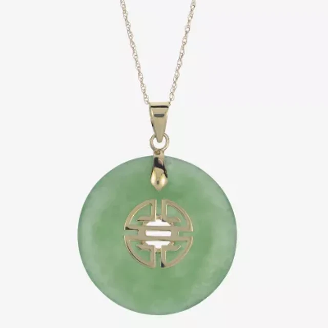 Genuine Jade 10K Yellow Gold Disc Pendant Necklace